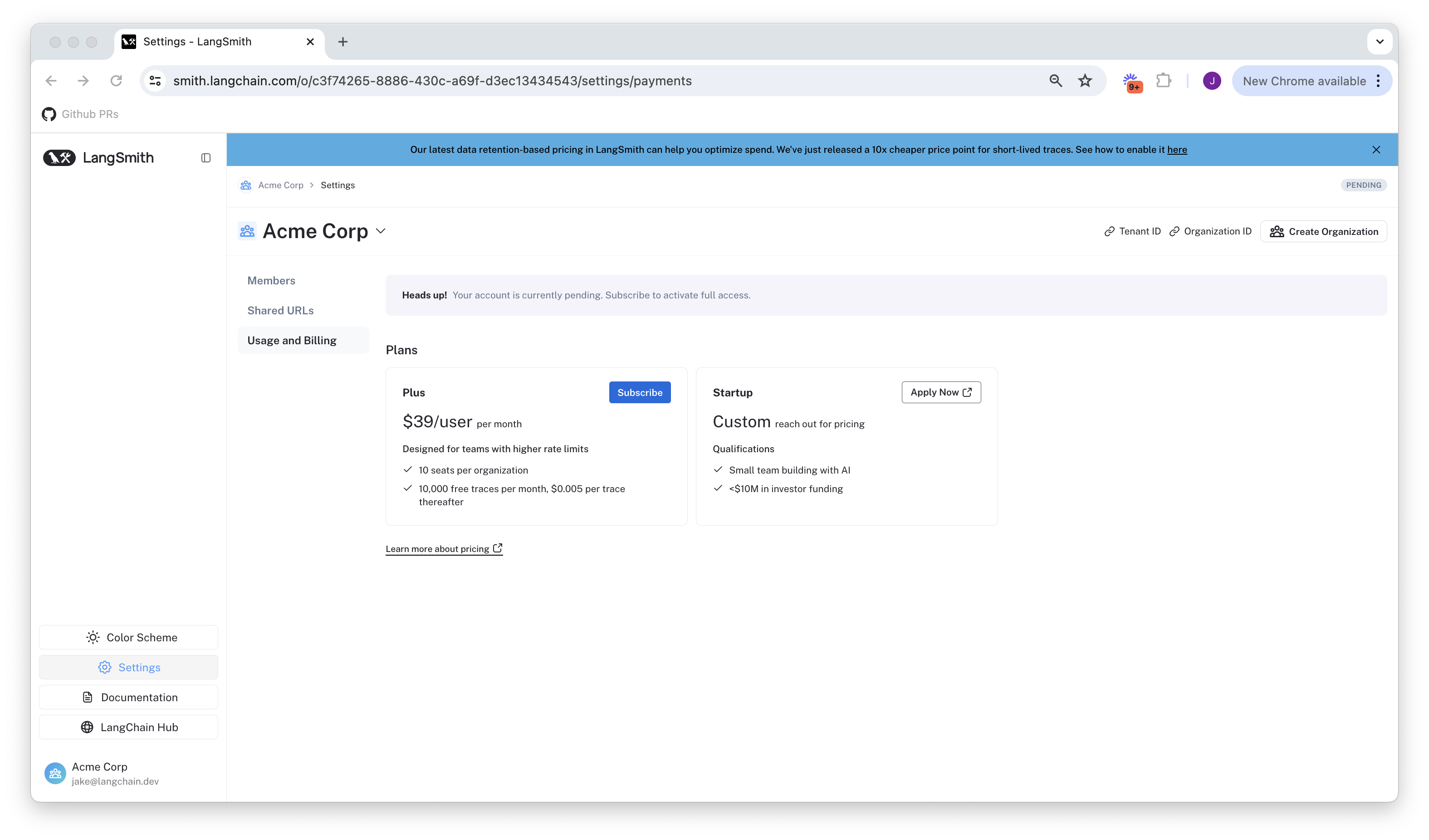 - If you created your LangSmith organization before pricing was introduced on April 2nd, 2024, please skip to the final section.