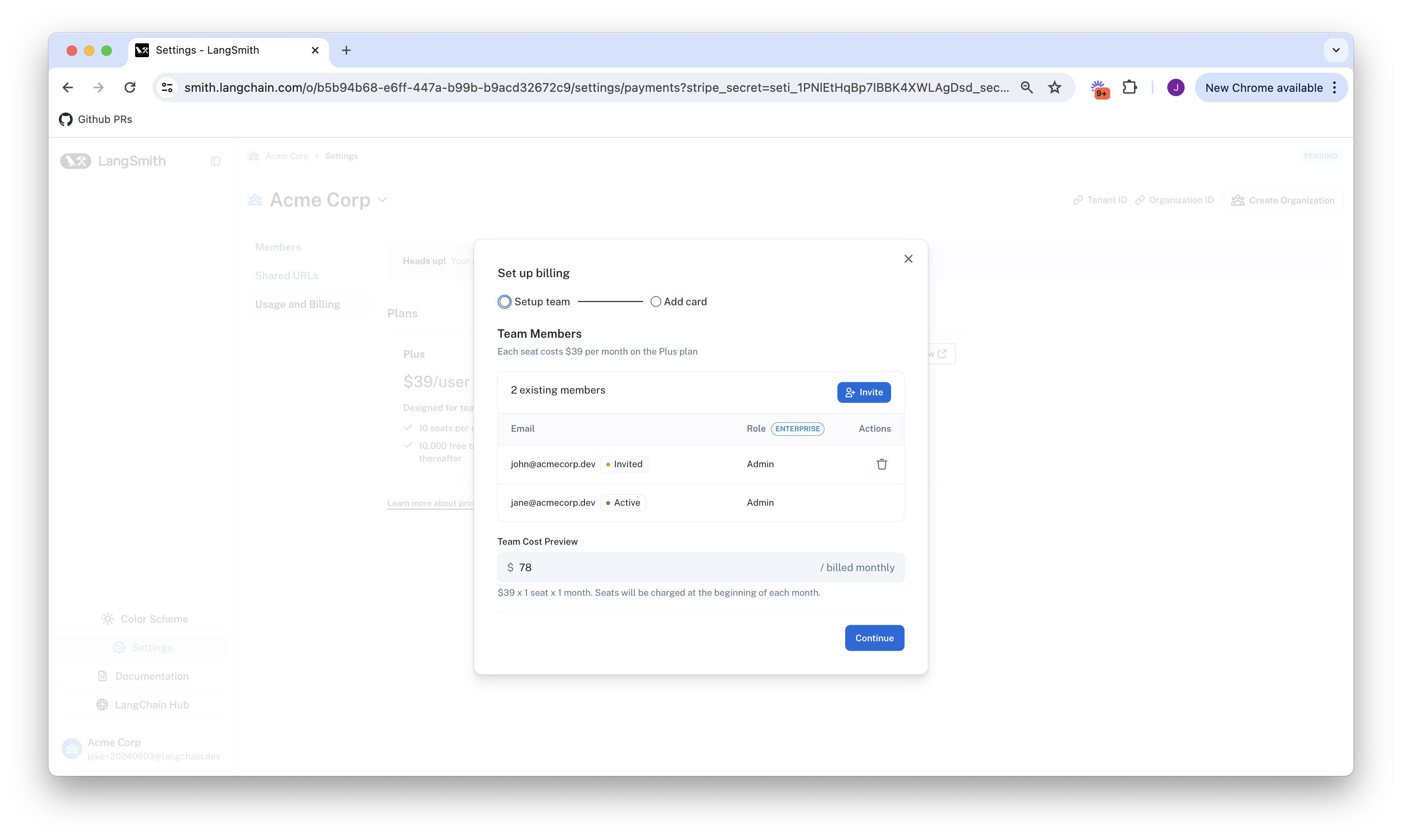 - Review your existing members. Before subscribing, LangSmith lets you remove any added users that you do not want to be included in the bill.
